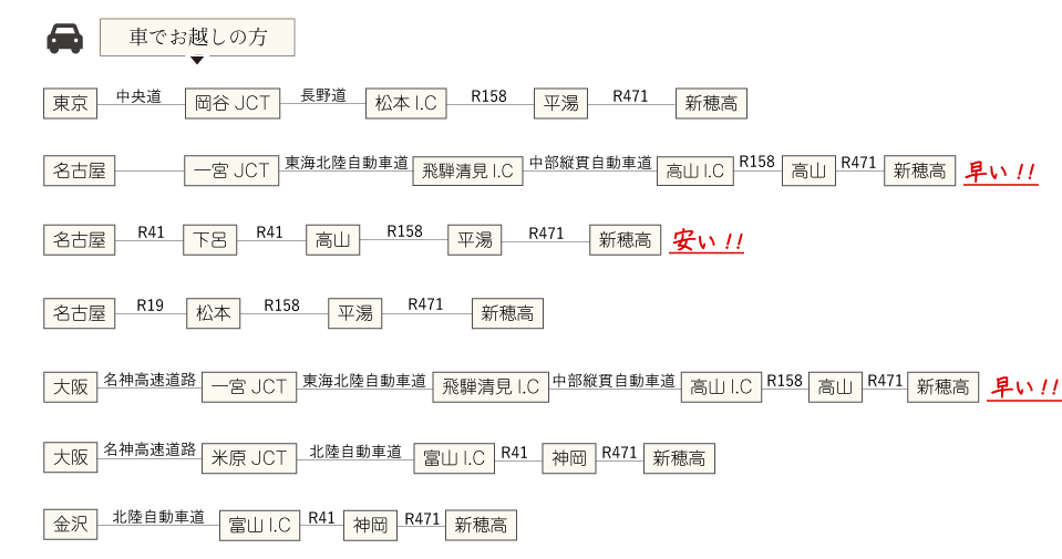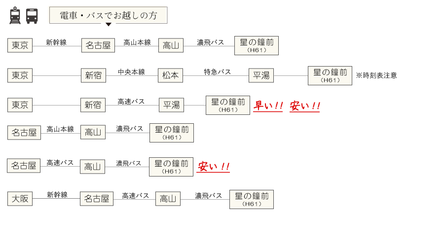 - (時間により平湯温泉での乗り換え必要)