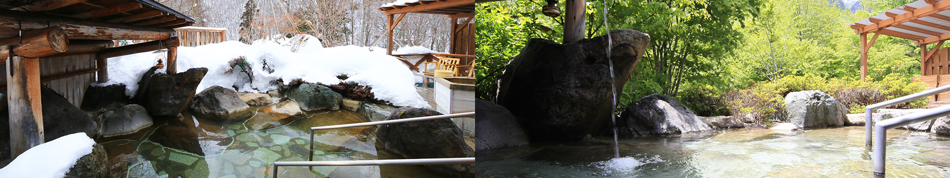 四季折々、新穂高の自然と共に変化する景色と源泉かけ流しの湯をお楽しみ下さい。