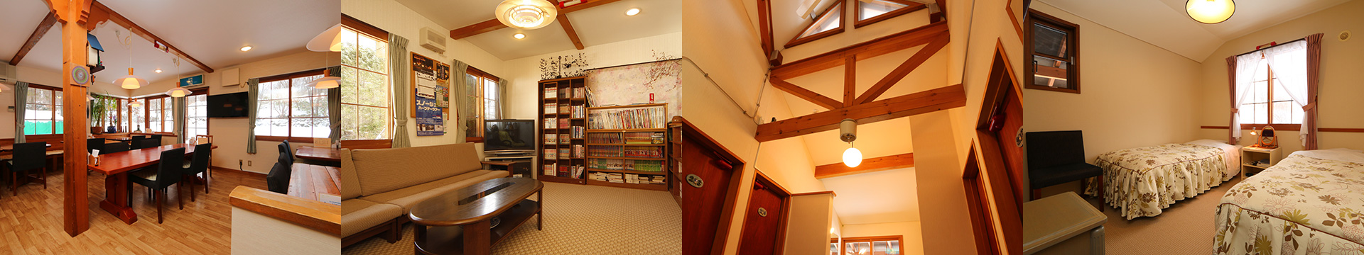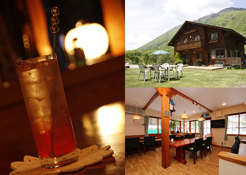 木の質感が山小屋を感じさせるダイニングはお客様の夕食、朝食をお出しする場所。