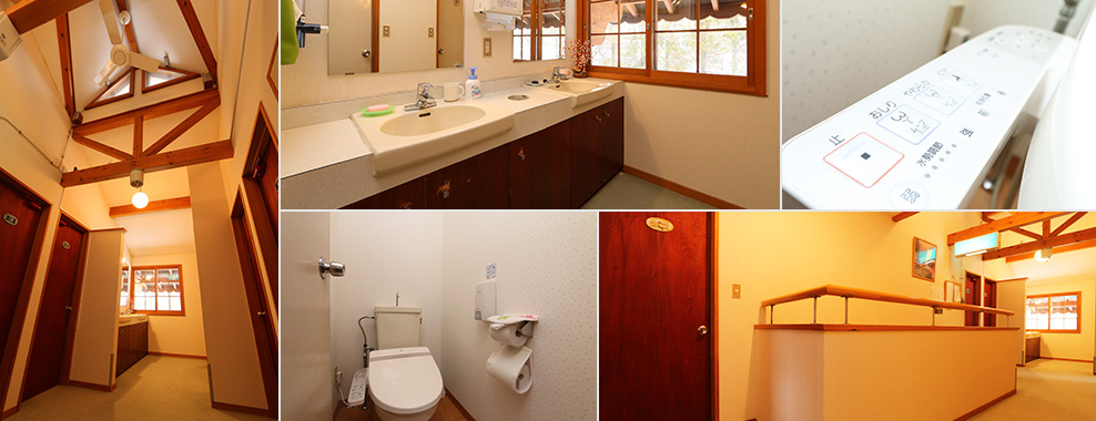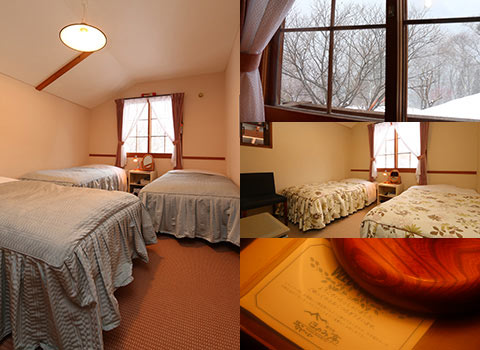 バストイレ付きツインルーム、バストイレ無しツイン・トリプルルーム、バス・トイレなしフォースルームとございます。トイレ・洗面は共用の施設をご利用下さい。